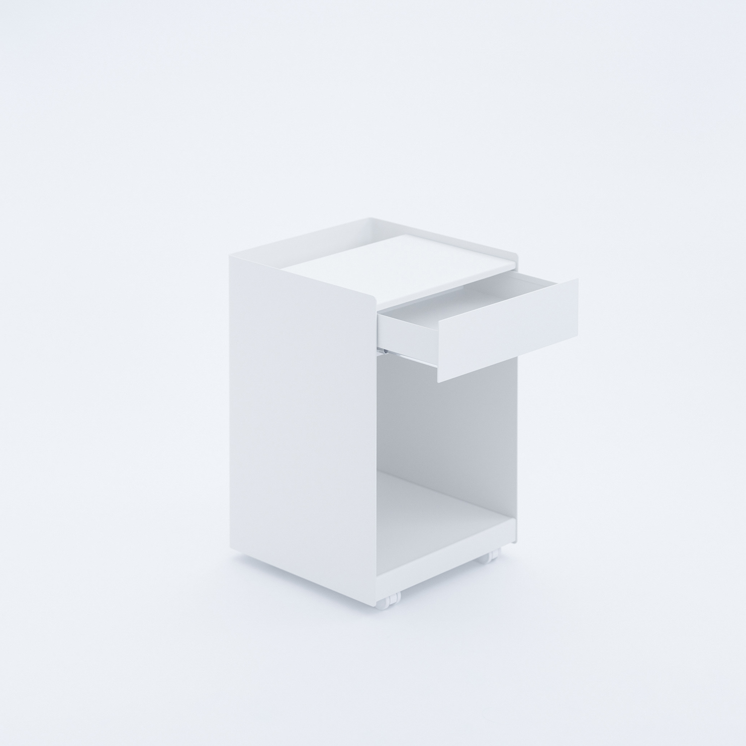 整理がしやすいスチールキャビネット。フラット面とポケットのある天板、クリアフォルダサイズの引き出し、ストレージを収容可能なオープンスペースで構成されている。左右側面と背面はマグネットで様々なオプションをつけてカスタマイズすることができる。