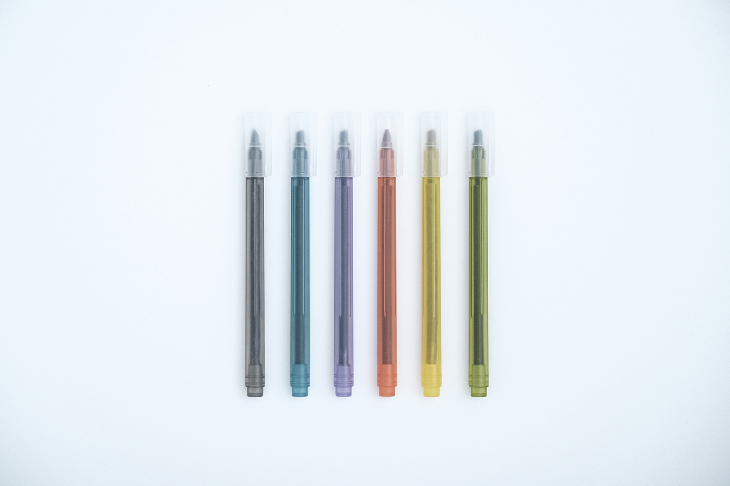 I have designed a compact marker with a thin axis ideal for drawing lines. I have taken into account the thickness of the axis, which is thin enough for drawing but not too thin to make it uncomfortable to hold or write. Furthermore, the thin axis makes it easier to insert multiple markers into a pen case. I have used translucent caps to keep the price low at just 50 yen. Additionally, we have positioned the rib in such a way that you can quickly see the direction of the pen tip even when the cap is on.