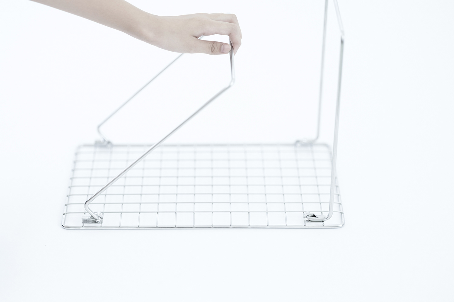 使用時は強固で安定感がありながら、ワンタッチで組み立てられて見た目も美しいヒンジのデザインを目指した。