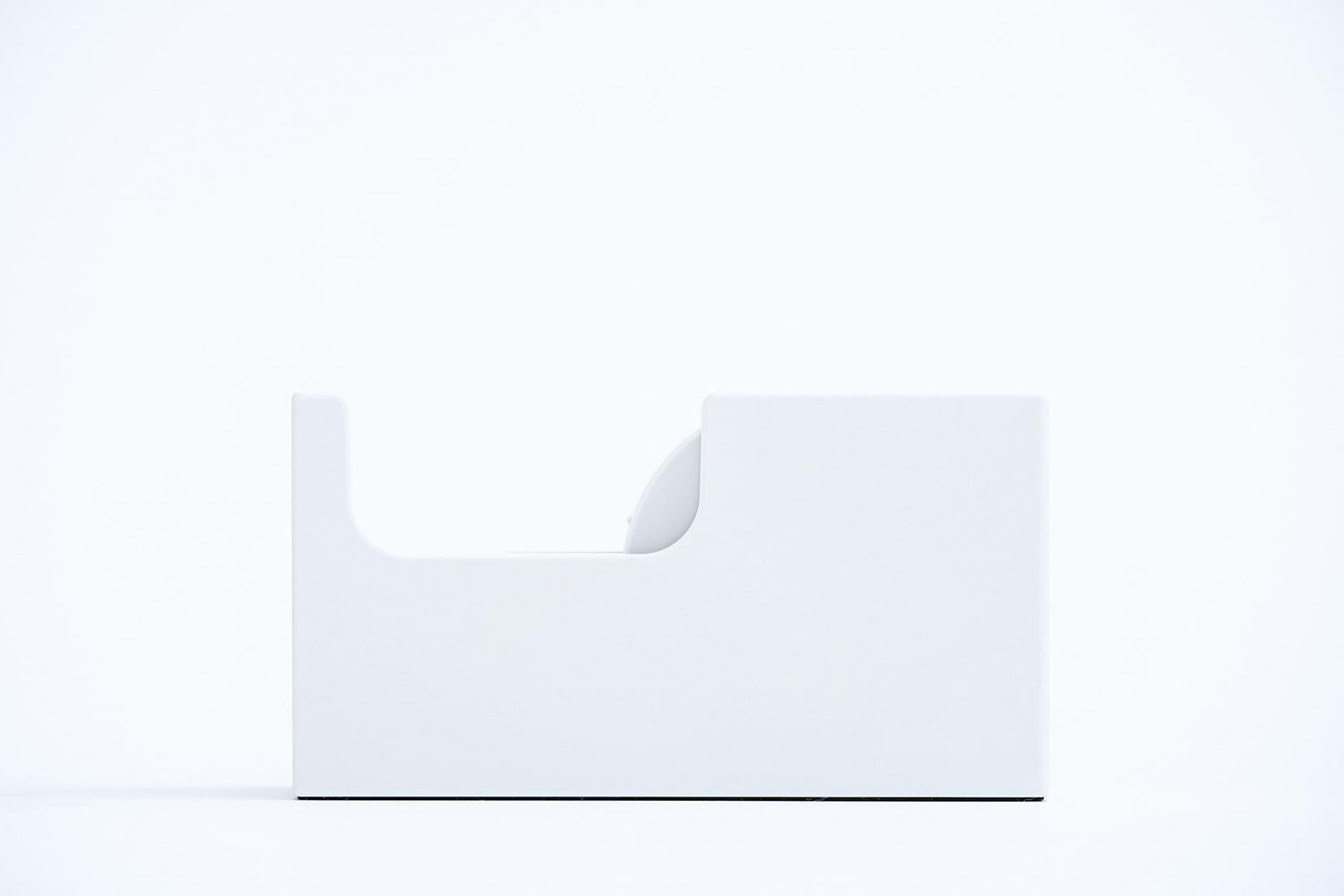 The tape dispenser has enough weight and compact size to prevent the main body from moving while cutting the tape with one hand. This is achieved by adding cement to both the main body and the reel. Additionally, all the parts were made into a case-like shape, giving the dispenser a simple appearance.